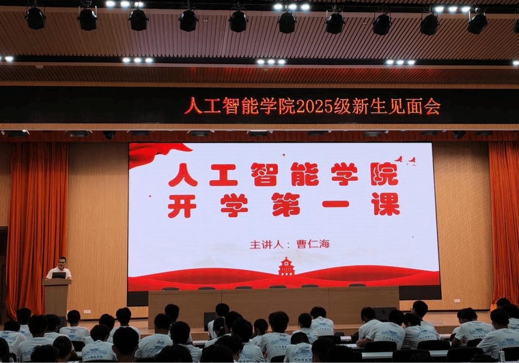 为引导新生坚定理想信念、筑牢安全防线,学院党委书记曹仁海以“传承薪火,启智润心,做新时代有为青年”为主题,为全体新生带来一堂内容丰富、意义深远的入学教育课。其授课内容以学校发展历程为脉络,深情讲述台州学院百年办学传统与人文底蕴。结合当前人工智能领域的发展趋势与社会责任,引导新生树立正确的世界观、人生观和价值观。从实验室安全、网络安全、人身财产安全等多个维度强调安全重要重要性。系统阐述马克思主义的基本原理与当代价值,鼓励同学们学会运用马克思主义立场、观点和方法分析问题、解决问题。
