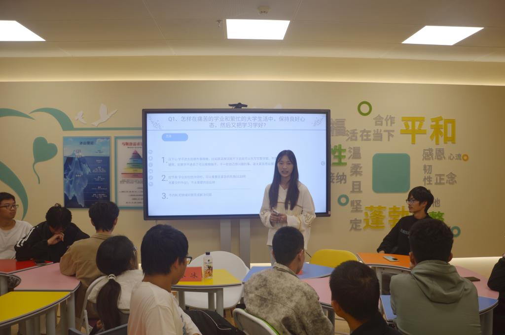 随后,李紫娟学姐分享了多种高效学习方法:课堂内容若难以理解,可借助哔哩哔哩软件、老师PPT等资源进行补充学习;学习疲劳时,可转换学习内容(如从背单词转为敲代码),以缓解单一学习带来的疲惫。此外,针对学习动力不足的问题,她提出“建立自我激励”机制,即在完成目标后适当奖励自己(如享用美食、进行一局游戏),增强学习的获得感;她还强调了文明修身的重要性,日常要注重行为细节,比如礼貌用语、遵守公共秩序、尊重他人边界,持续自我反思,及时修正不当行为,在沉淀中完善自己。