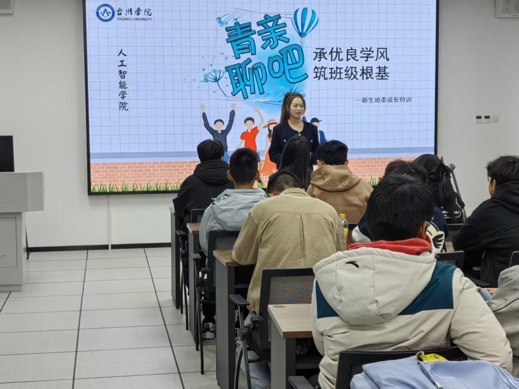 为帮助新生班委尽快适应岗位角色、提升班级管理能力、传承学院优良学风,筑牢班级建设基础,人工智能学院于11月28日在科技综合楼703成功举办第95期“青亲聊吧”新生班委成长特训活动。本次活动以“承优良学风,筑班级根基”为主题,特邀22数学卓越班班长、团支书和学习委员担任分享嘉宾,为2025级全体新生班委带来了一场内容详实又极接地气的经验分享会。活动由学院党委副书记董立达与辅导员徐一得共同主持,30余名新生班委代表参与。