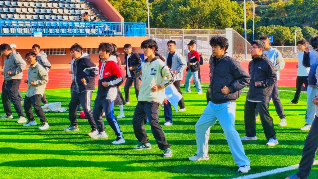 紧接着,在舒缓的传统器乐背景音中,教练们带领大家完整练习整套功法,同学们列队整齐,抬手、转身、屈膝的动作逐渐从生疏变得连贯,现场氛围宁静而专注;教练们还分享了“日常在宿舍可单独练习某几式”的实用技巧。最后,活动以5分钟的全身拉伸收尾。活动结束,活动结束,大家纷纷表示:这次功法练习活动既舒缓了日常学习的疲惫,又学到了实用的健身技巧,收获满满。在传统器乐的陪伴下,跟着教练一招一式地练习,不仅身体得到了舒展,内心也变得格外平静。这样慢节奏、重体验的活动,比单纯的体育锻炼更能让人静下心来,希望学院以后能多组织类似的健康活动,让大家在忙碌的学业中也能兼顾身心调养。