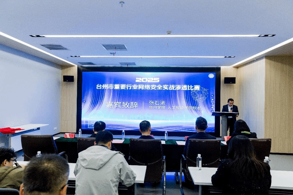 12月19日,为期四天的2025年台州市重要行业网络安全实战渗透比赛在台州学院人工智能学院圆满闭幕。该赛事由台州市委网信办、台州市教育局、台州市卫生健康委主办,台州学院参与承办,台州市网络安全协会协办。人工智能学院深度参与了赛事组织与服务工作,为本次高水平、实战化网络安全盛会的成功举办提供了有力支持。