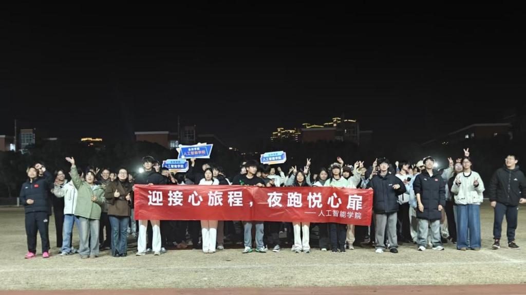 本次荧光夜跑活动不仅鼓励同学们走出宿舍、走向操场,在奔跑中释放压力、强健身心、凝聚集体力量,也生动展现了人工智能学院学子昂扬向上、团结进取的精神风貌。未来,学院将继续组织开展形式多样的文体活动,为同学们搭建锻炼身心、交流互动的平台,营造健康积极的校园文化氛围,让每一位学子在文体浸润中锤炼综合素质,在青春实践中践行“澡身浴德、修业及时”校训精神,成长为德智体美劳全面发展的高素质应用型人才,为服务区域发展、担当时代使命积蓄力量。