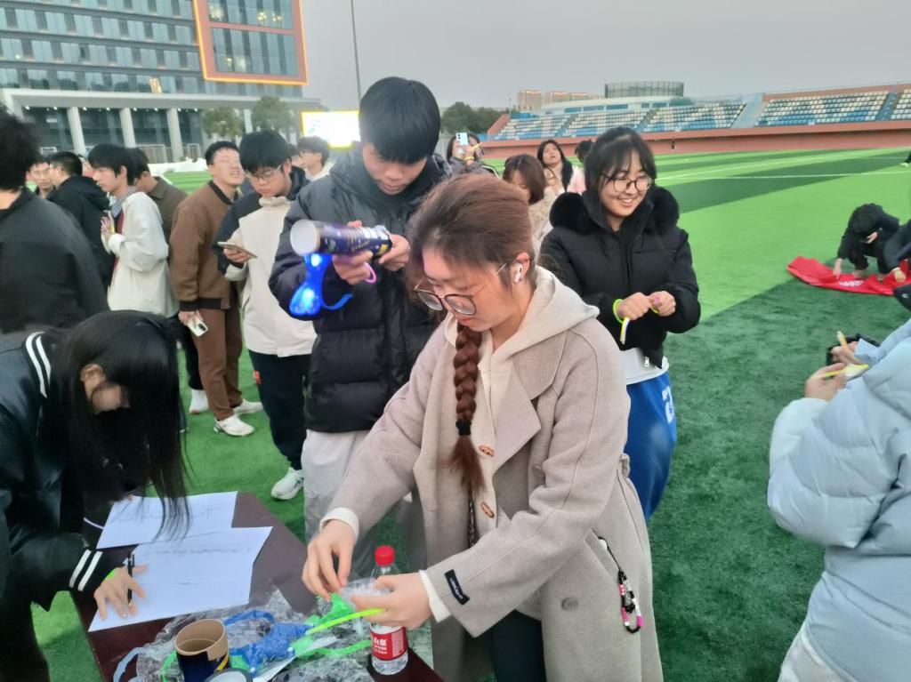活动开始前,团学会工作人员提前布置现场,为同学们分发荧光手环等装备。同学们或佩戴手环,或戴上发箍,或涂上荧光颜料......这些闪烁的荧光饰品不仅是夜间奔跑的安全保障,也寄托了学院对同学们身心健康的关切,为此次活动赋予了温暖而特别的意义。