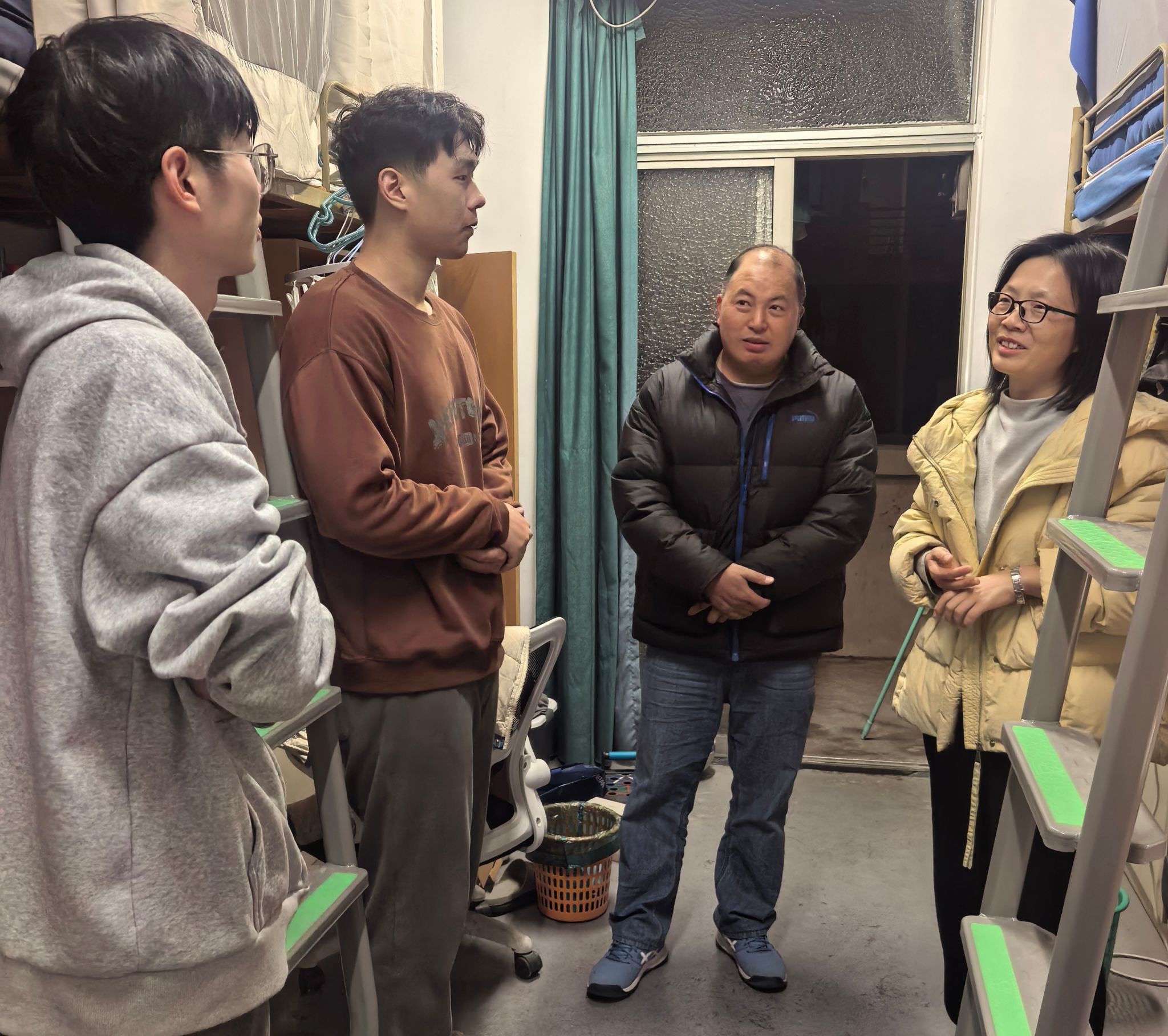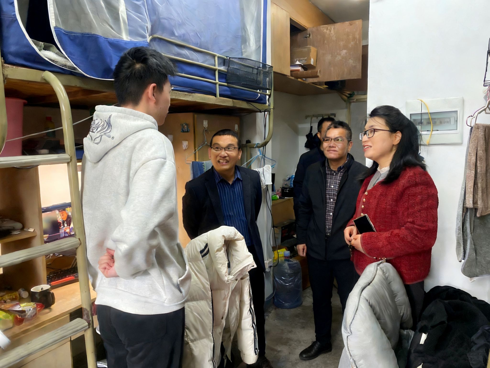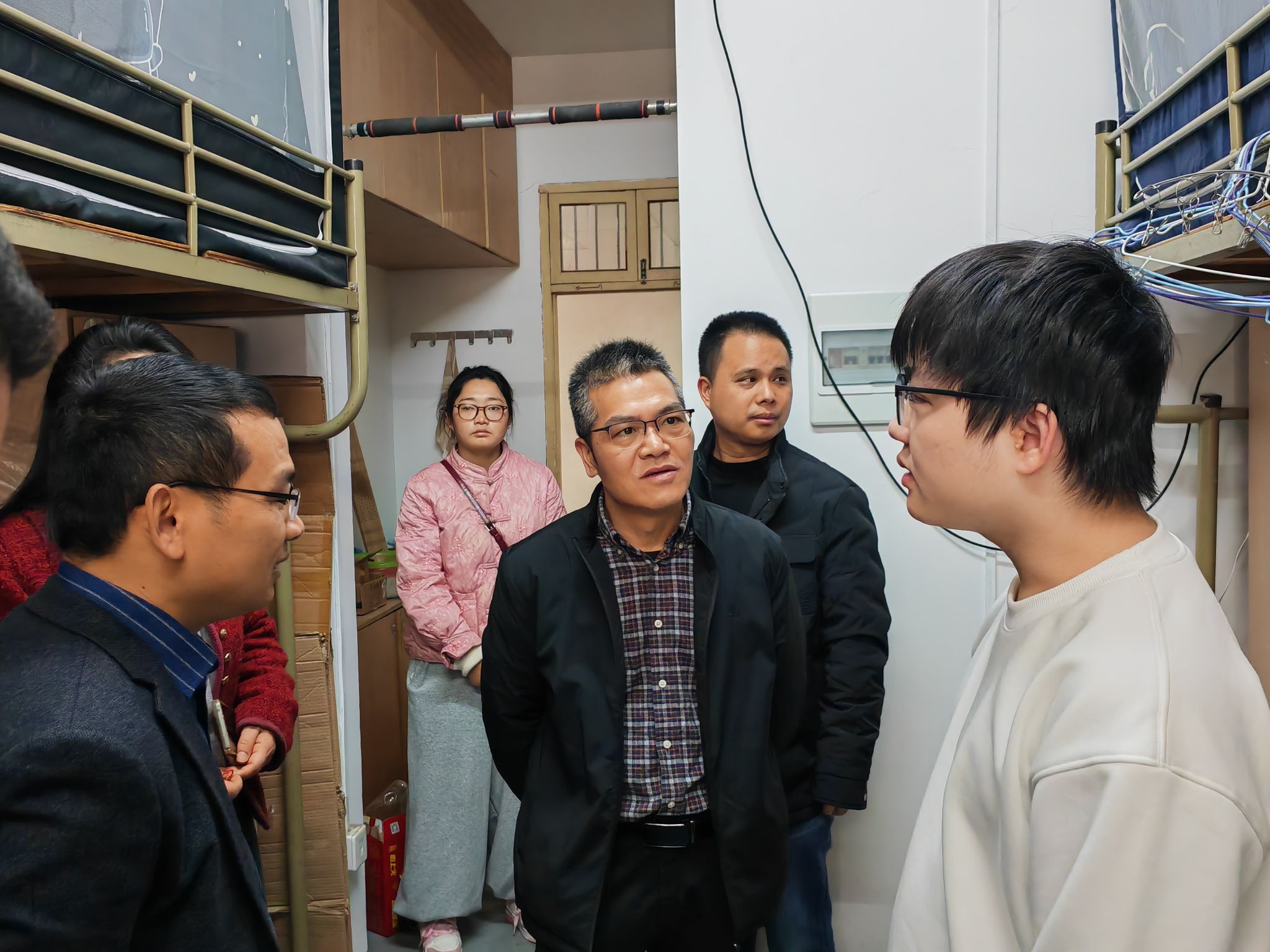 走访过程中,学院领导与留校学生围坐交流,仔细询问同学们留校期间的学习计划、科研进展以及生活上的困难。在得知部分同学为备战考研、投身科研项目选择留校后,领导们给予了充分肯定,鼓励大家珍惜宝贵的学习时间,合理规划作息,保持积极向上的心态,在追求梦想的道路上脚踏实地、奋勇前行。