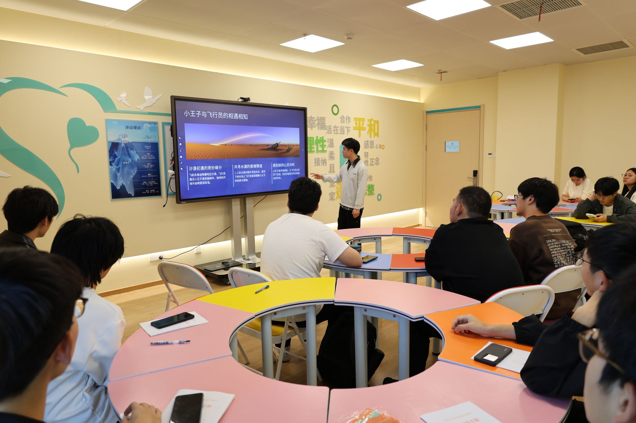 为深化书香校园建设,丰富同学们的精神生活,引导大家在经典阅读中涵养情怀、坚定信念,助力舒缓压力、塑造阳光心态,增强“健康第一”的意识,实现身心协同发展。4月10日,人工智能学院“向阳工坊”二级心理辅导站于科技楼335活动室成功举办“向阳开卷”第六期,“书卷传谊·共话知音”主题活动。学院各年级20余名学生代表参与本次活动,7名同学依次登台带来经典书目分享,活动由心理辅导员王玲玲老师主持。