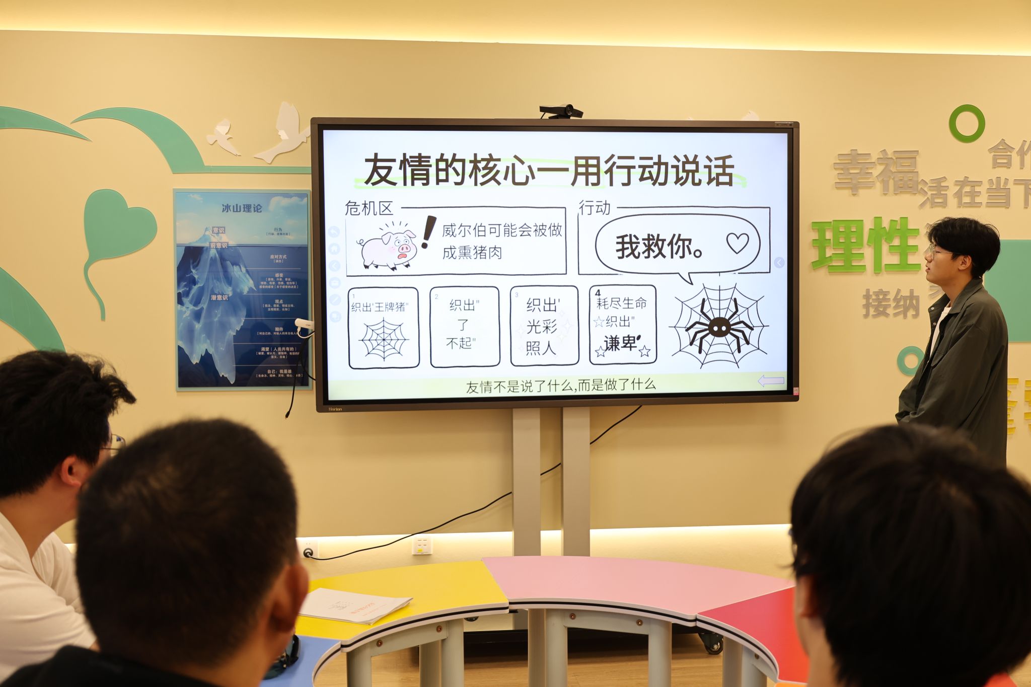 接着,同学们结合阅读体会与生活思考,依次进行了饱含温度的书目分享。刘佳艺以《小王子》为引,带领大家重温童真初心,探讨爱与责任的深刻内涵;冯凯楠分享《第二次呼吸》,传递出直面困境、在逆境中坚守希望的精神力量;王鑫宇围绕《友谊的蓝图》,解读友谊本质与成长意义,展现真挚情感的滋养价值;汪依婷借助《追风筝的人》,讲述救赎与勇气的故事,引发在场同学强烈共鸣;王彬红通过《夏洛的网》,诠释友情与承诺的温暖力量;闭海涛以《一路两个人》为题,分享陪伴与成长的珍贵感悟;乔乐则从《人间值得》出发,传递接纳自我、从容生活的治愈智慧。