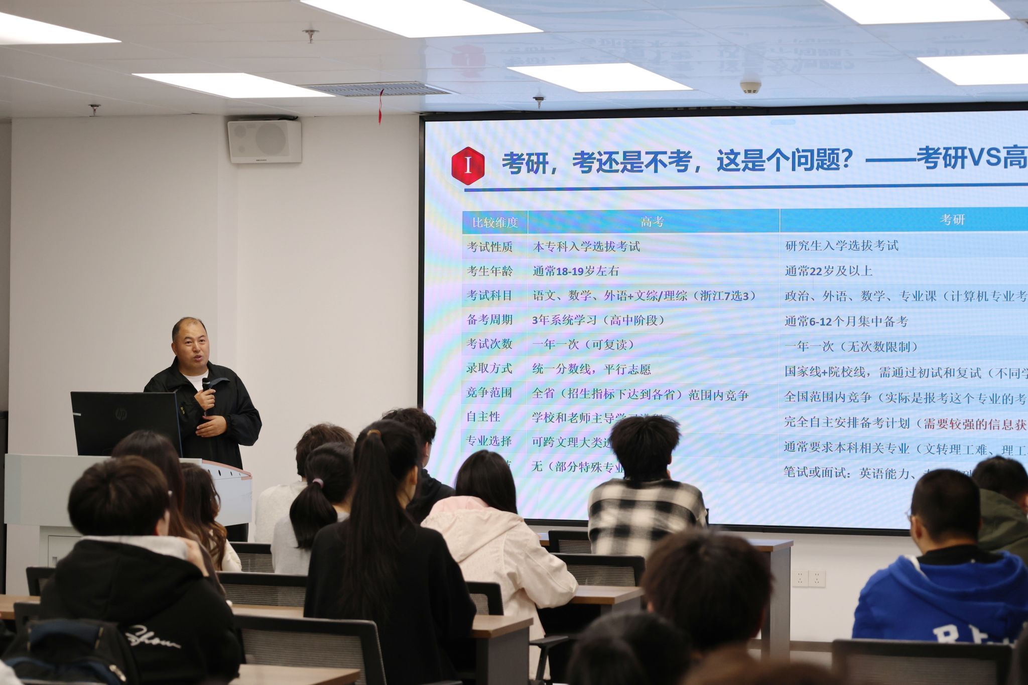 随后,副院长郭文平围绕考研工作开展专题指导。他结合大数据专业考研趋势、历年录取情况,从考研目标院校选择、备考时间规划、各科目复习重点、报名流程及注意事项等方面进行了全面细致的讲解,针对性解答了同学们在考研备考中可能遇到的困惑,鼓励有考研意向的同学坚定信心、科学备考、全力以赴。