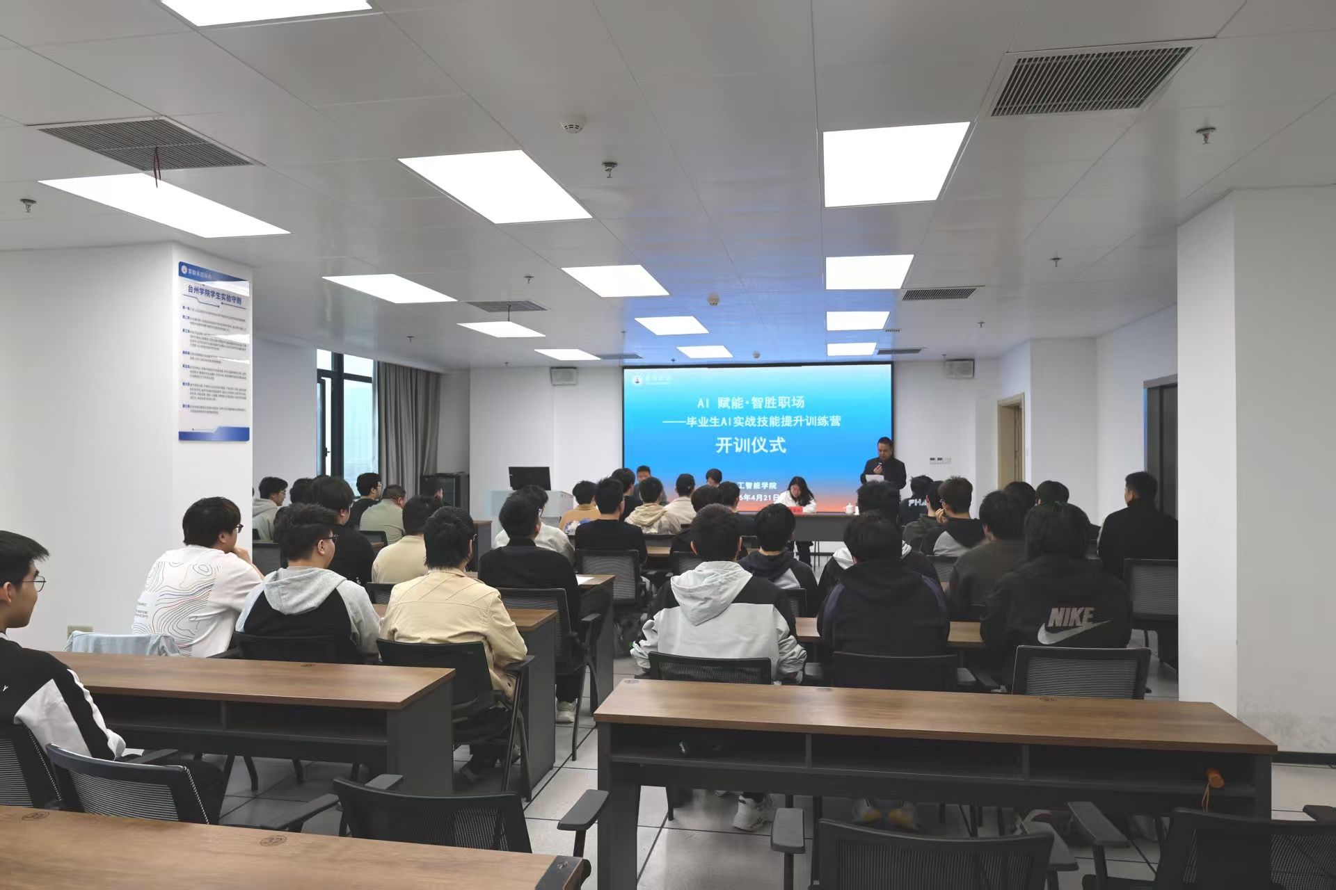4月21日下午,“AI赋能・智胜职场——毕业生AI实战技能提升训练营”开训仪式在台州学院椒江校区举行。
