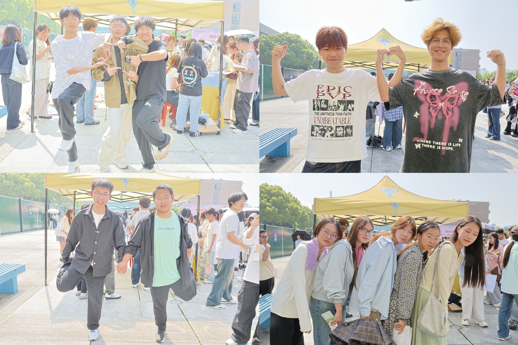 在“合照打卡挑战”区,各小组根据指定姿势创意合拍,花式比心、趣味造型轮番上阵,专业相机定格下一张张青春笑脸。大家默契配合、大胆展示,用定格瞬间传递阳光心态,现场笑声不断、暖意融融。