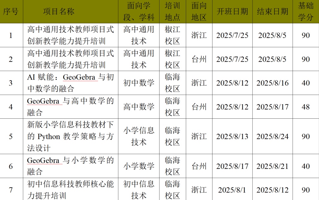 2025年上半年浙江省中小学教师专业发展培训项目选课自2月14日开始,台州学院(培训机构代码:016)电子与信息工程(大数据)学院面向全省开设多学科、多学段教师培训课程,欢迎各位教师关注、转发、选报!