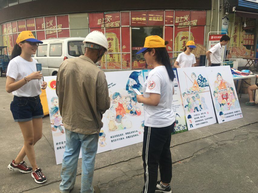 在楚门镇政府防范办的大力支持下,5日下午,实践队在楚门镇社会公共服务中心开展了坐点宣传活动,拉起“崇尚科学,反对邪教”的横幅,陈列反邪漫画宣传展板,旨在普及反邪知识,宣传科学文化。同时,实践队部分队员两两组队向周边街道居民发放调查问卷,分发宣传手册。当地群众对实践队的活动给予了支持与肯定,不仅在坐点宣传处驻足了解,还积极配合问卷调查工作,他们表示在了解了反邪知识后更坚定了抵制邪教的信念。