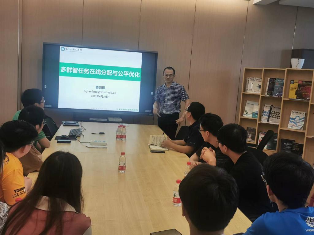 6月20日,应电信学院邀请,湖北省“楚天学者”特聘教授、浙江省杰出青年基金获得者,武汉科技大学鲁剑锋教授来校交流,并为计算机系相关老师作题为:“多群智任务在线分配与公平优化”的报告。电信学院副院长张石清主持。