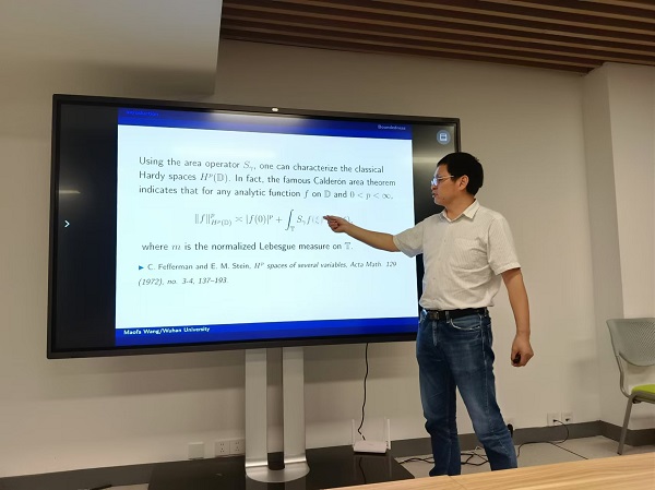 近日,武汉大学数学与统计学院王茂发教授来到电子与信息工程学院,在科技综合楼401室作题为《Area operators on Hardy spaces of Dirichlet series》的精彩学术报告。电信学院院长张石清主持讲座,数学教研室相关老师参加。