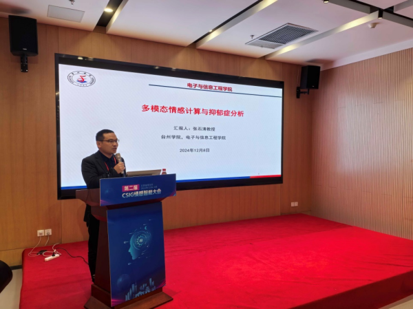 我校电子与信息工程学院院长张石清教授应邀出席大会,并在专题论坛“情感计算与精神障碍诊断”上作题为《多模态情感计算与抑郁症分析》的学术报告,全面阐述了我校团队在多模态情感计算及抑郁症诊断方向近年来所取得的一系列研究成果,深入探讨了该领域的未来发展方向,引起了与会专家学者与学生的广泛关注与热烈讨论。