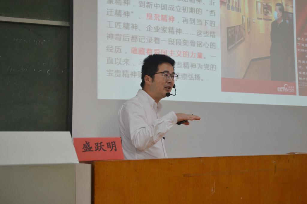 盛跃明副院长以百年党史与精神谱系为切入点解读了这些精神背后一段段刻骨铭心的历史和蕴藏着的爱国主义力量。他为大家讲述了“红船精神——创党精神”,这是开天辟地、敢为人先的首创精神,坚定理想、百折不挠的奋斗精神,立党为公、忠诚为民的奉献精神;“井冈山精神、苏区精神——星火燎原精神”,这段历史承载着中国共产党人的初心和使命,铸就了中国共产党的伟大革命精神;“长征精神——伟大远征精神”,它蕴含着革命理想高于天,不怕牺牲、排除万难去争取胜利,面对形形色色的敌人决一死战、克敌制胜的内涵;“延安精神——宝塔山精神”,它传承于中华民族优秀文化传统和民族精神,孕育于中国共产党和中国人民的伟大创造;“西柏坡精神——赶考精神”,它包含着“两个务必、两个敢于、两个坚持、两个善于”的精髓……最后,他要求每一名党员每一位同学面对新时期、新阶段,以史鉴今,不忘初心,鼓舞大家紧跟党的时代步伐,大力弘扬党的精神财富,为国奋斗才是最好的爱国表白。